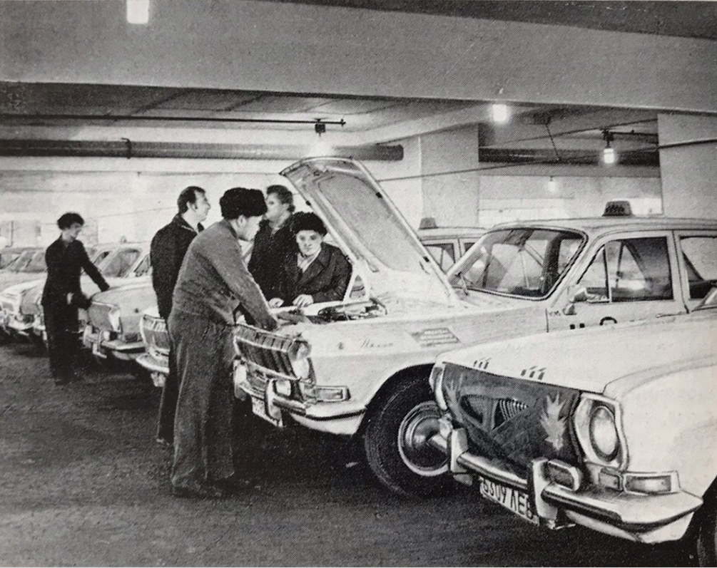В шестом таксомоторном парке г. Ленинграда (фото из журнала Ленинградская панорама N3’84. 2)