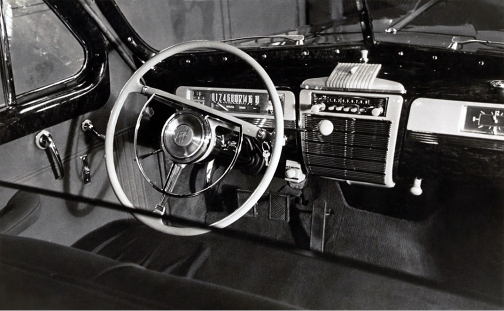 Хотя первостепенен был комфорт пассажира, рабочее место шофёра тоже сделали вполне эргономичным для 1940-х. Рычаг переключения механической коробки передач впервые в отечественном автомобилестроении разместили на рулевой колонке. Несмотря на отсутствие усилителя руля, управление машиной не утомляло. Пассажирский салон отличался просторностью — даже человек выше среднего роста может спокойно вытянуть ноги и удобно расположиться на заднем диване. Помимо ламп индивидуальной подсветки, в распоряжении задних пассажиров были индивидуальные пепельницы. В салоне также предусмотрено два раскладных сиденья, страпонтена. Они предназначались для пассажиров статусом ниже и не отличались большим удобством использования. Все стеклоподъёмники электрогидравлические — такое решение сделало их работу практически бесшумной. Помимо часов в передней части салона, по желанию заказчика свои часы могли быть и в салоне для пассажиров. Сам пассажирский салон отделялся от водительской части стеклянной перегородкой, которую при необходимости можно было опустить. Автомобиль снабжался радиоприёмником модели А-695 с двумя громкоговорителями: у водителя, и у задних пассажиров. Подсветка шкалы радиоприёмника менялась в зависимости от выбранного тембра: голубой (музыка), белый (пение), красный (речь).