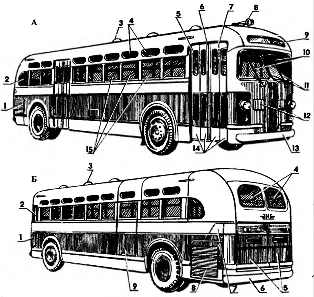 *на первых 75 экземплярах устанавливались американские двигатели GMC-4−71. На примерно 50 экземплярах из последней партии были установлены дефорсированные двигатели от лимузина ЗИС-110, автобус с этим мотором получил индекс ЗИС-154А. **автобус приводится в движение дизель-электрической силовой установкой, использование которой позволяет обойтись без установки коробки передач.