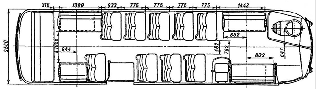 Кузов: вагонного типа, с задним поперечным расположением двигателя